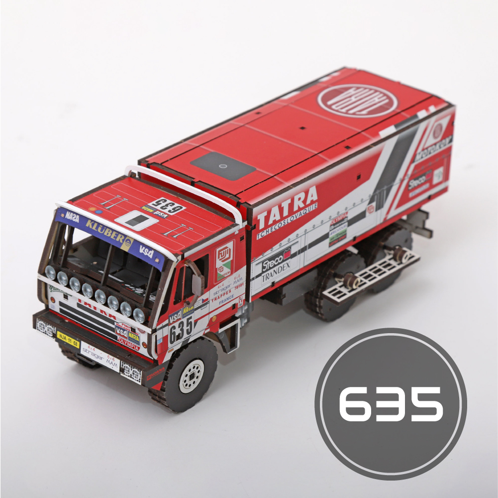 Stavebnica modelu Tatra 815 6x6 PARIS DAKAR (č.635) je vyrobená zo sololitu s farebnou potlačou. Na vyrezávanie jednotlivých dielov sa používa laserová metóda.